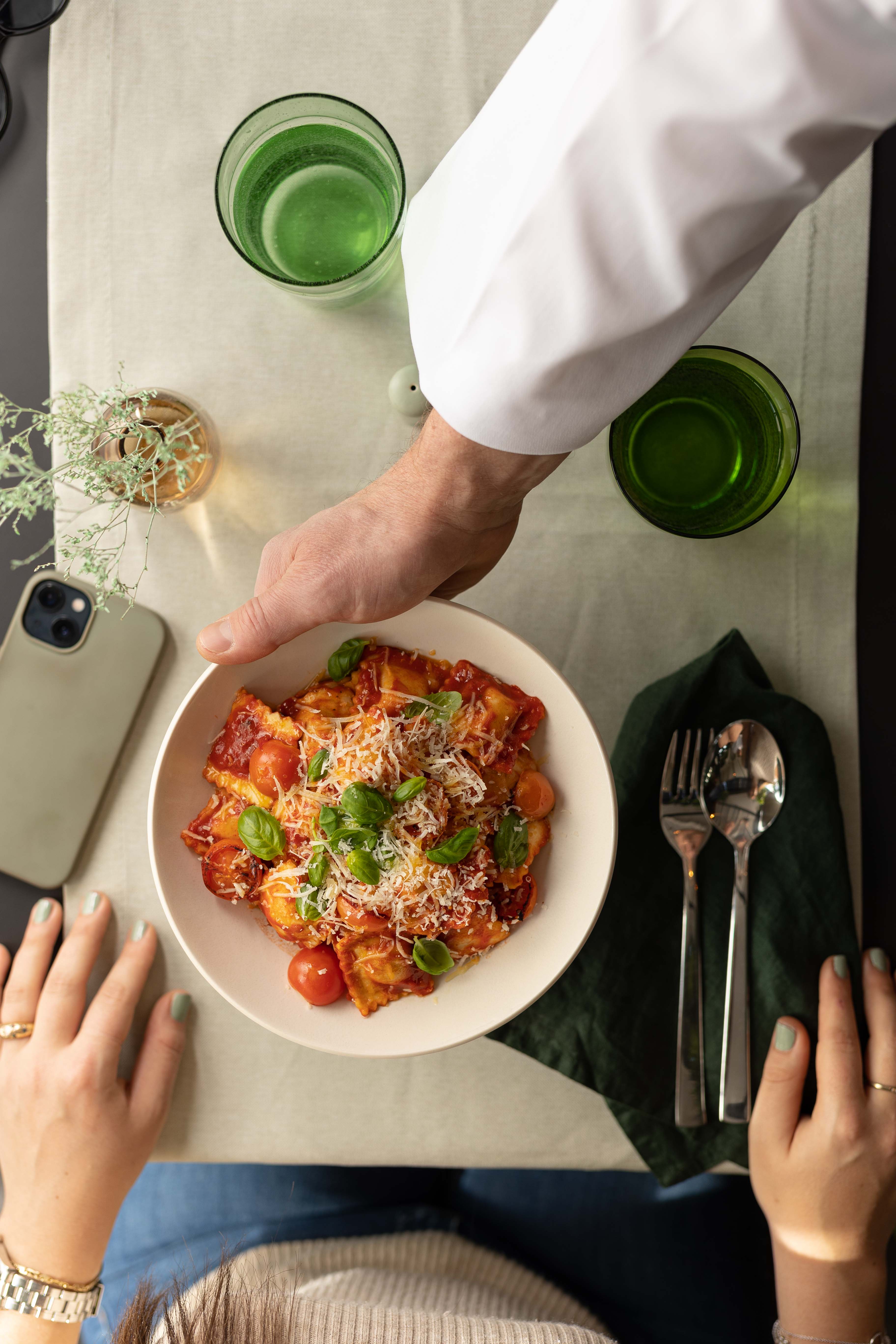 - Geschirr und Besteck,