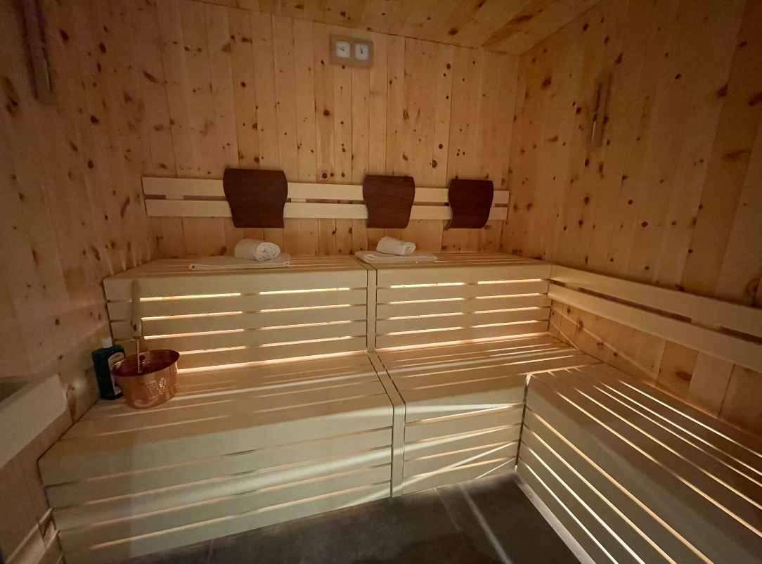 - private Zirben-Sauna mit Dusche